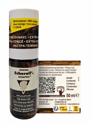 Scherell s SCHAFTOL extra dunkel, 50 ml Flasche mit Applikationsschwamm DE/EN/FR/ES/RU
