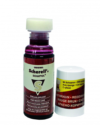 Scherell s SCHAFTOL rotbraun, 50 ml Flasche mit Applikationsschwamm DE/EN/FR/ES/RU