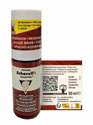 Scherell s SCHAFTOL rotbraun, 50 ml Flasche mit Applikationsschwamm DE/EN/FR/ES/RU